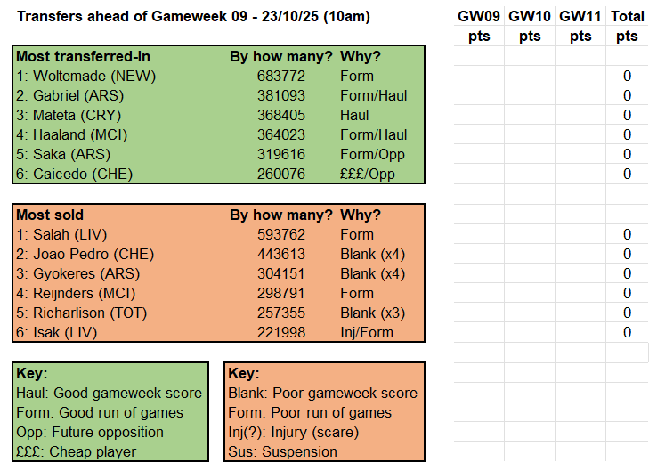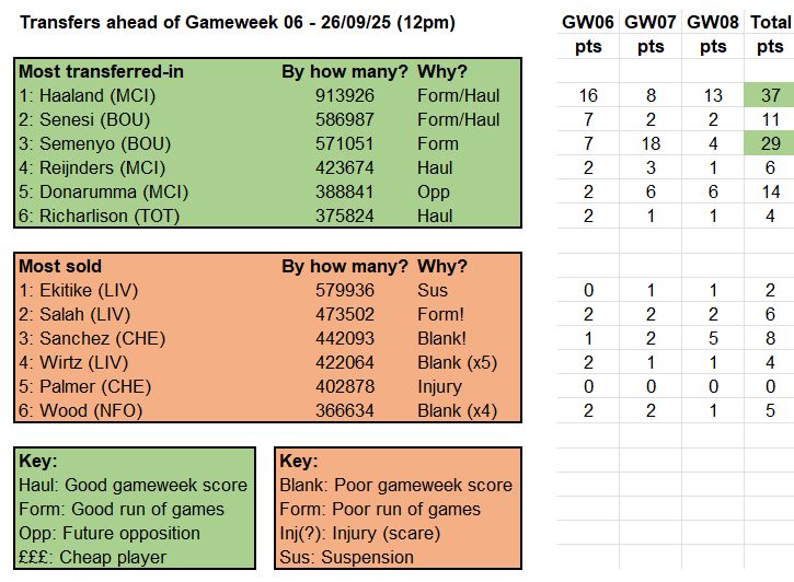 Sooner or later, Salah is going to give his millions of sellers cause for regret but, as things stand, the herd’s decisions are largely still paying off. Haaland, Semenyo and Gabriel continue to reward their legions of recent buyers while, on the other side of the ledger, only those who offloaded Cucurella in bulk ahead of gameweek 7 (and two Chelsea clean sheets) are likely to be suffering much in the way of buyer’s remorse: