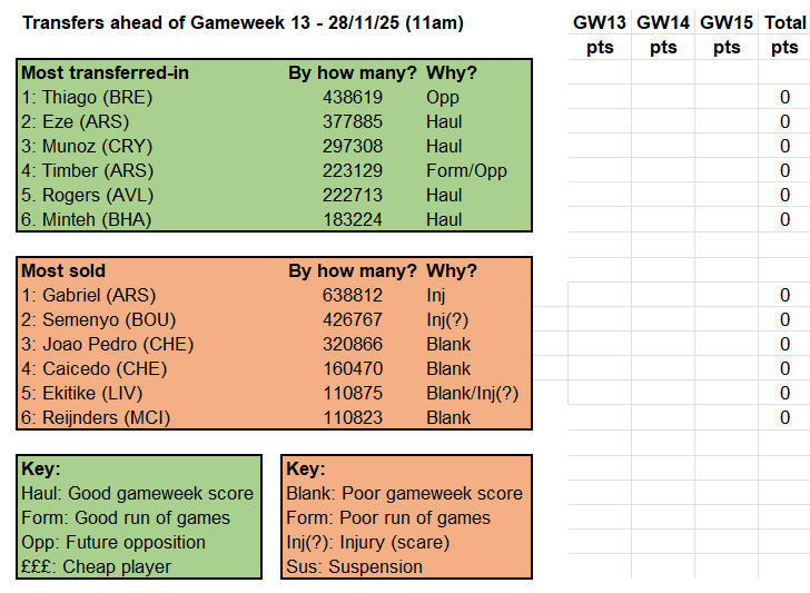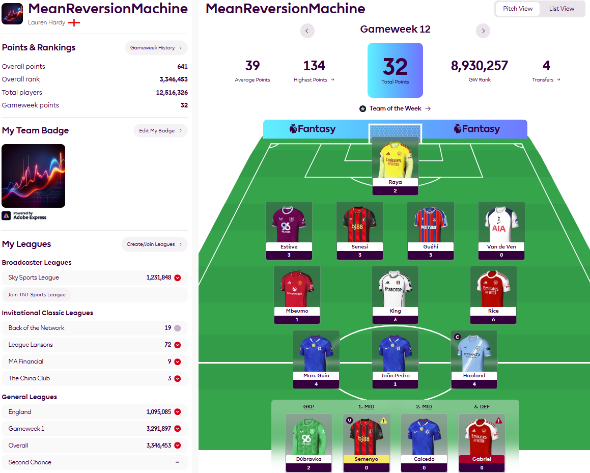 Now, however, with the recent demotion of Mo Salah from the index and the imminent prospect of five free top-up transfers to offset losing, well, Bryan Mbeumo to the African Cup of Nations, there is the chance of at least reinforcing the portfolio’s midfield and attack to coincide with Burnley hosting Fulham in GW16 or Everton in GW18. Then, after all that effort, maybe I won’t feel so bad reheating the leverage line.