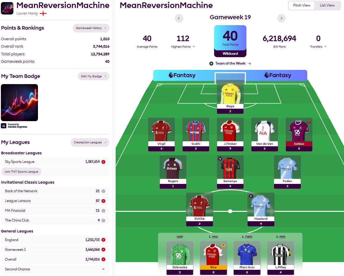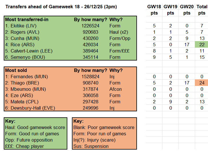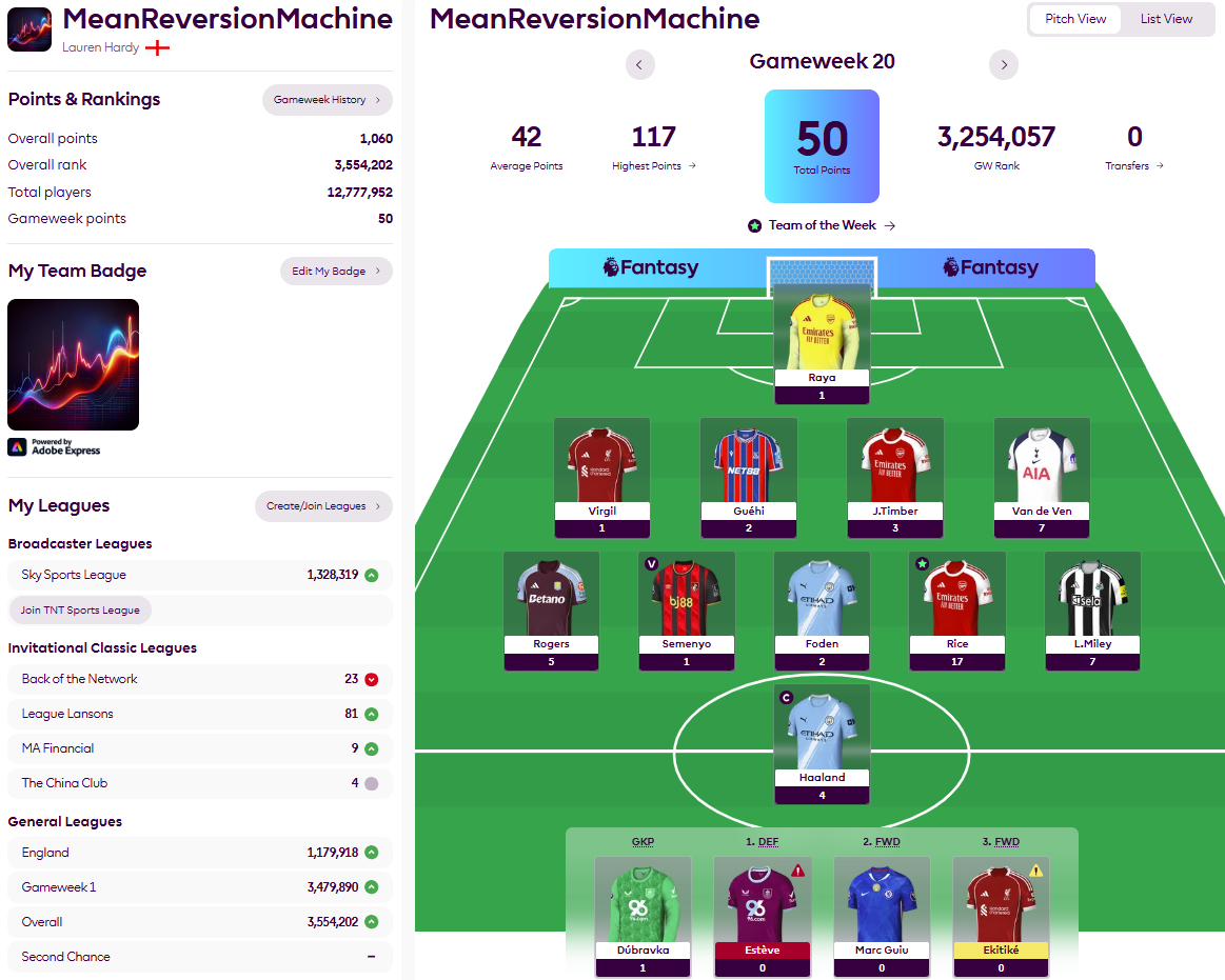 Short answer – not spectacularly but well enough to drag the portfolio dangerously close to first-quartile status. Recent performance has been built on some strong defending and, if I am honest, the portfolio’s advisers waiting as long as possible to crunch the ownership numbers to ensure they could bring in Thiago for Ekitiké. That certainly worked this time but may not seem so clever if the Liverpool striker is fit to face Burnley.