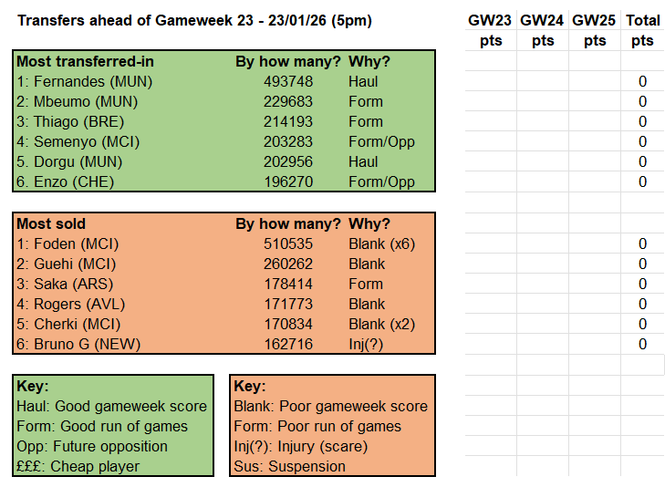 It is the third week in a row for this line-up but Foden will soon to give way – currently to Harry Wilson of Fulham but more likely, by the time we rebalance on Friday, I suspect, to Bruno Fernandes. As you can see in our top-left Herdwatch table below, the Manchester United talisman was the most popular transfer-in ahead of Gameweek 23 – and that despite facing Arsenal away.
