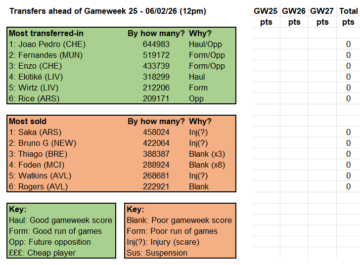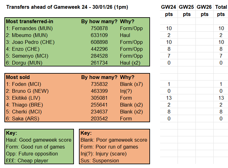 Cue another market swing, with Thiago the most-bought players ahead of Gameweek 22. Since when, as you can see in the bottom-right of our Herdwatch tables at the end, he has managed six points – which, just to rub a little extra salt into the wound, is less than half the points Ekitiké racked up against Newcastle (the team Liverpool beat to his signature last summer).